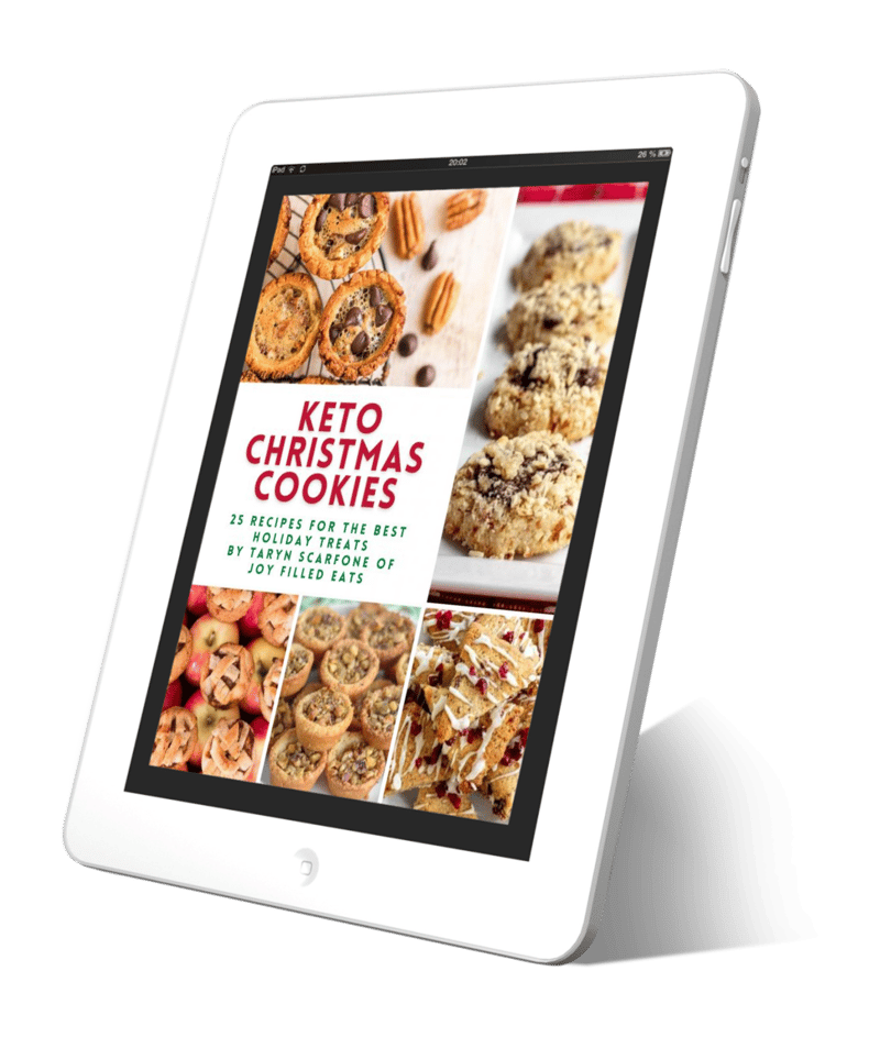 Hi there Reader--- I hope you are enjoying this special time of year already! My girls and I have this weekend set aside for baking, candy making, and gingerbread houses. I can't wait! However, it can definitely be hard to stick to healthy eating in December so I encourage you to make some low carb cookies for Santa this year! I'm sure the big guy will appreciate them :) Here are 5 of our favorites: Brand new for 2025, my Keto Snowball Cookies positively melt in your mouth. Use walnuts or pecans for the perfect bite. ---> Keto Snowball Cookies These Butter Pecan Cookies live up to their name. They are buttery and chock full of pecans. They are crisp, sweet, and are the perfect sweet bite after supper. ---> Butter Pecan Cookies If you like Cinnamon Rolls you have to try these Cinnamon Roll Cookies. They have the delicious cinnamon flavor and cream cheese icing in a cookie form. ---> Cinnamon Roll Cookies Jam Thumbprint Low Carb Cookies are very easy to make, pretty, and tasty. They are such a holiday classic I don’t think I’ve ever been to a cookie exchange where someone didn’t make these. ---> Jam Thumbprint Low Carb Cookies If you are looking for the perfect chocolatey bite you’ve come to the right place. These Chocolate Chip Shortbread Cookies are great with a cup of coffee or dunked into a big ole glass of milk. Give this chocolate chip shortbread recipe a try today, you won’t be disappointed. ---> Chocolate Chip Shortbread Cookies CLICK HERE for even more COOKIES! For a nice, ad-free experience, get my Cookie eBook! Keto Christmas Cookies: 25 Recipes for the Best Holiday Treats by Taryn Scarfone of Joy Filled EatsBUY NOW This one is an easy to use pdf that looks great on your phone, tablet, or desktop without any ads. Get all of my best cookie recipes for just $4.99! Everything from classics like Butter Cookies and Snickerdoodles to No Bake Peanut Butter Cookies and Biscotti. All Keto. All Low Carb. All Gluten-Free. All with complete nutrition information and photos. BUY NOW |